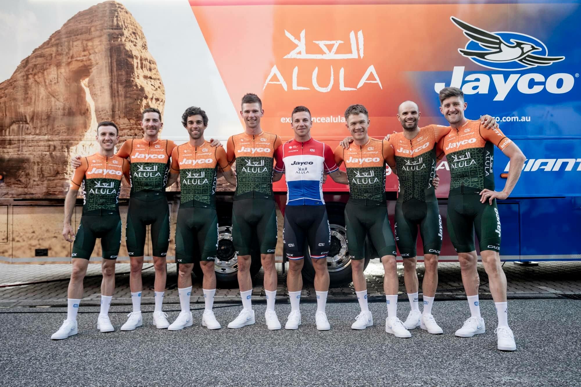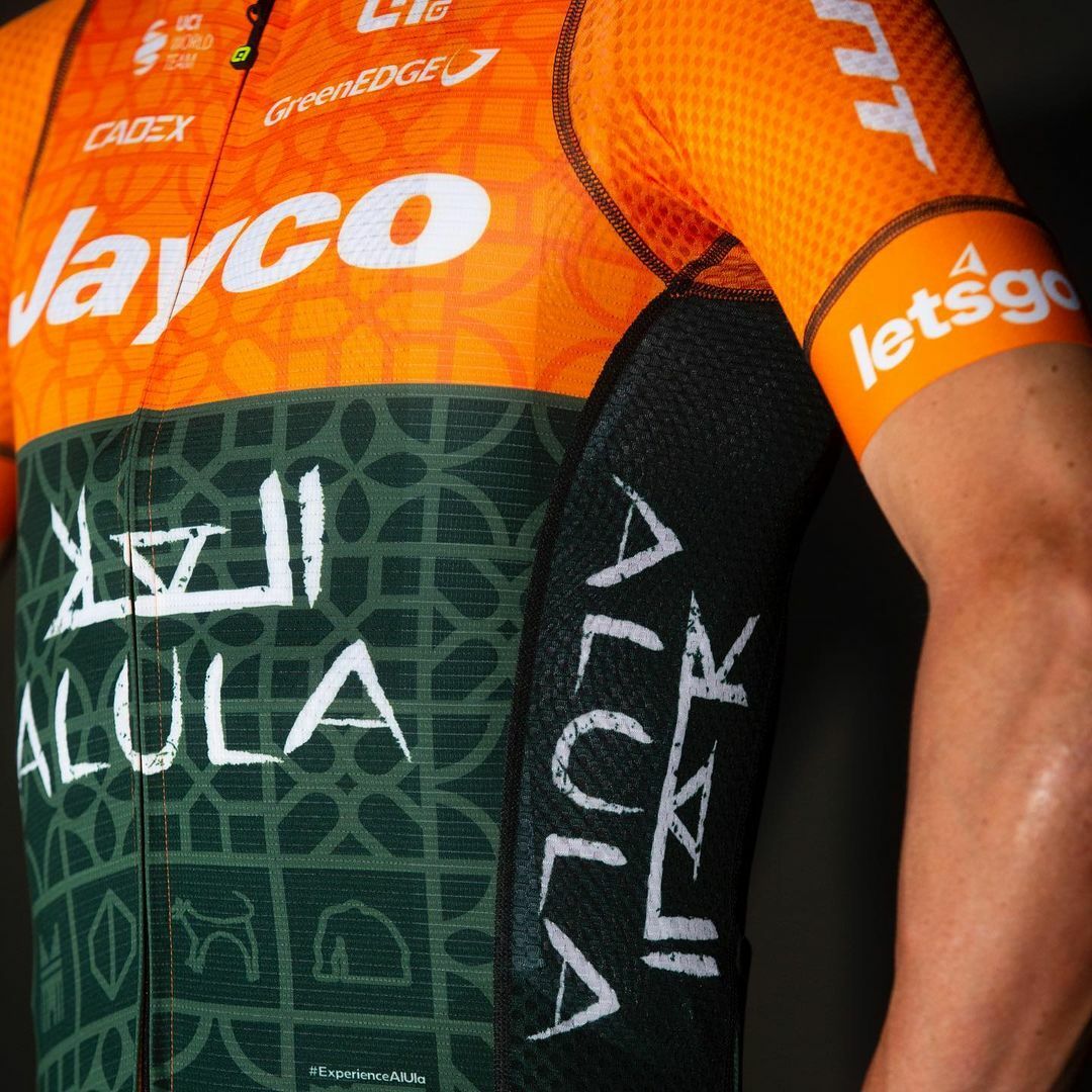 Jayco AlUla車隊在2024年環法自行車賽前夕,隆重推出全新設計的賽車服飾。這款賽車服的設計靈感來自車隊第二個冠名權合作夥伴AlUla,一座位於沙烏地阿拉伯西北部的古老綠洲城市,也是中東地區著名的自行車旅遊勝地。