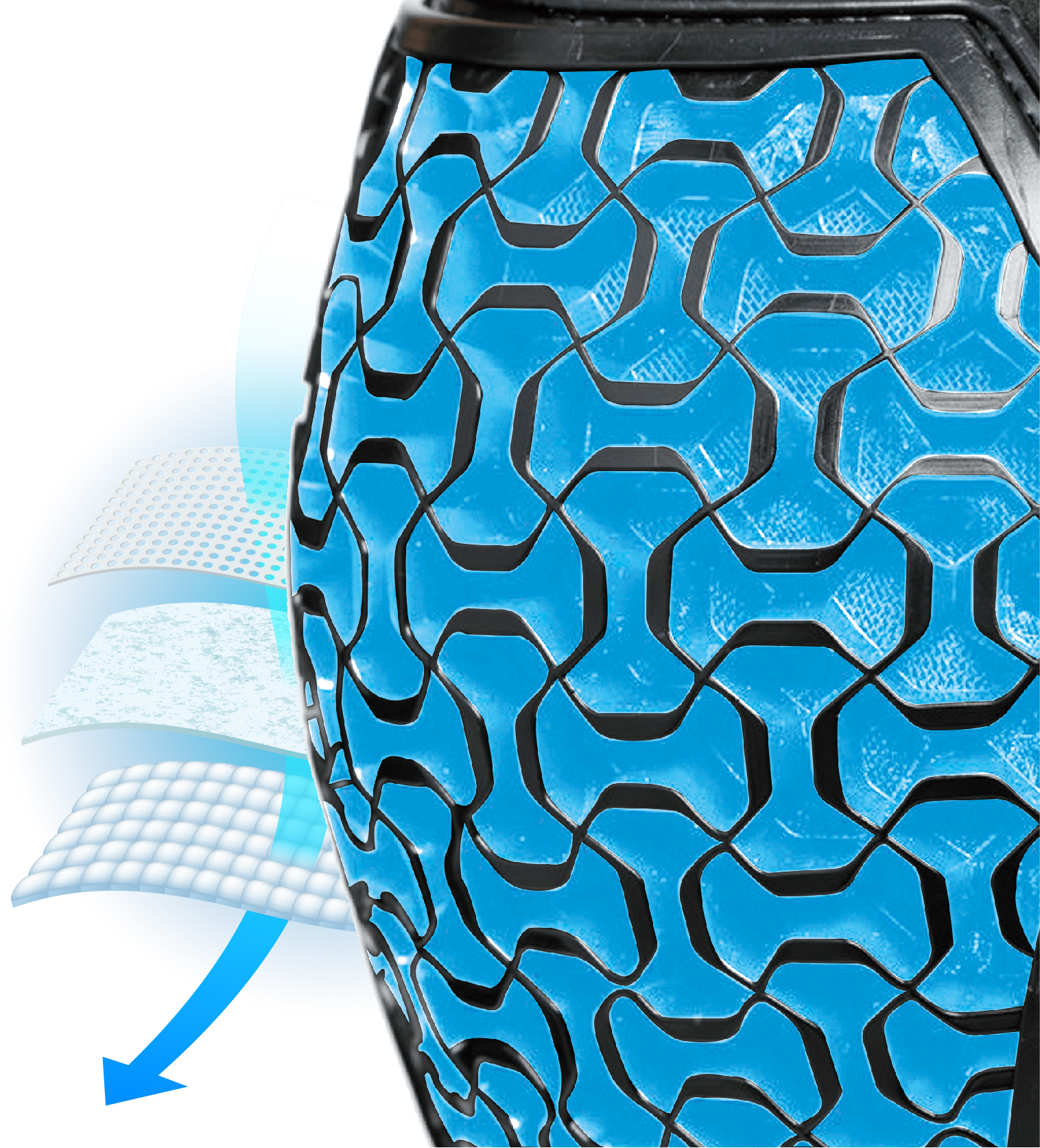 PRO-SHAPE2 技術將衝擊能量轉化為熱能,並消散83%的衝擊力。