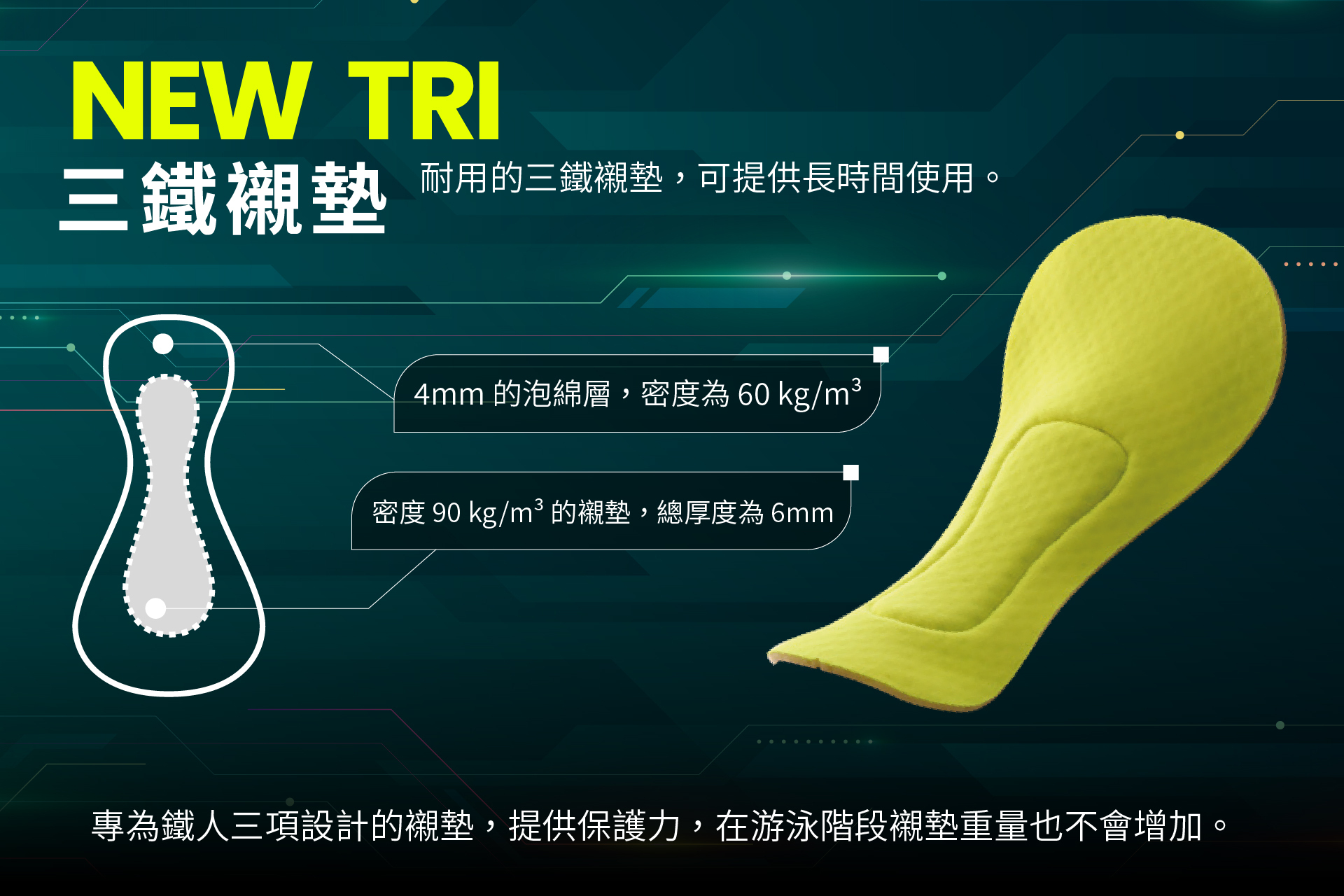 NEW TRI耐用的三鐵襯墊,可提供長時間使用。