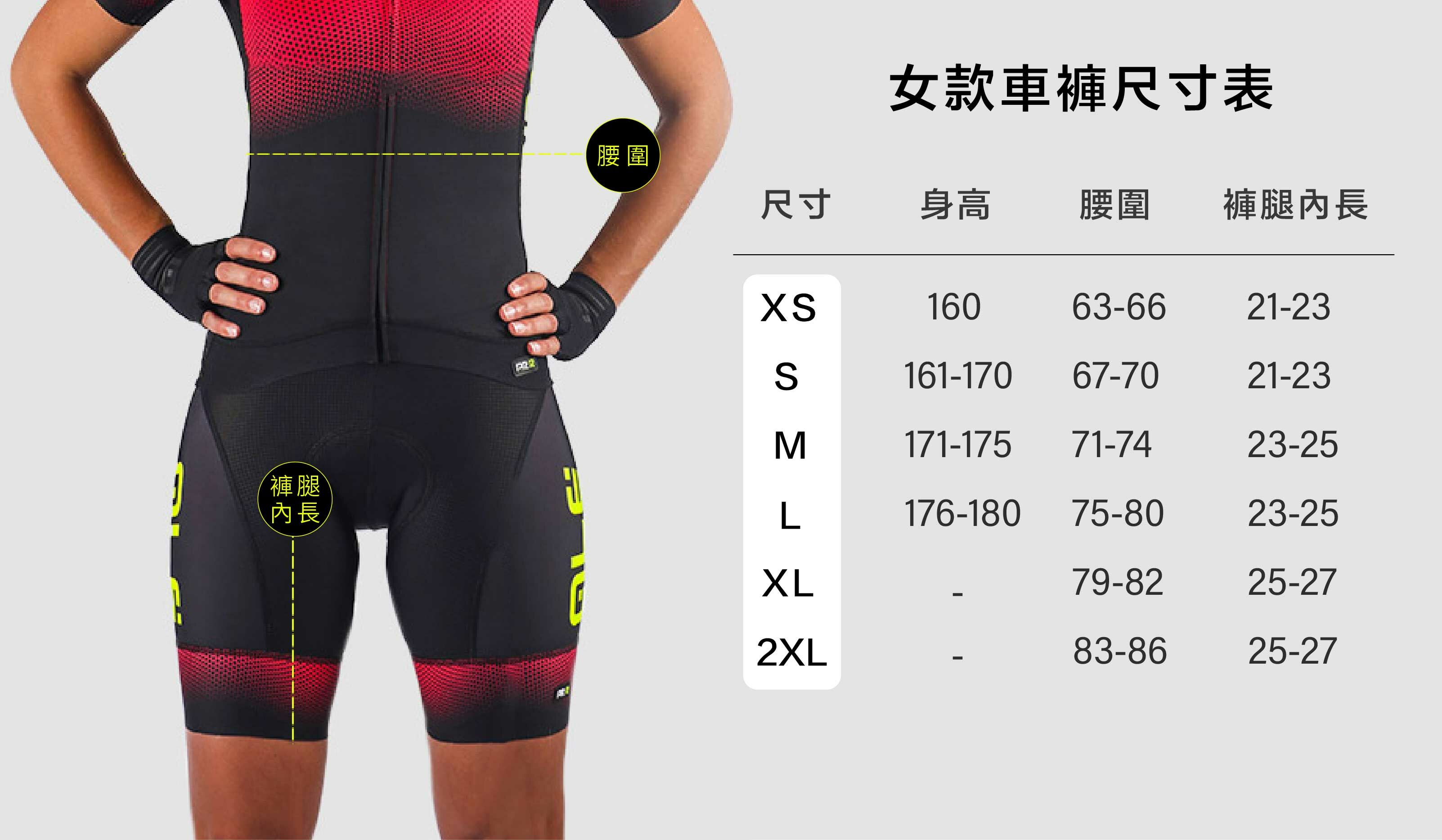 (本尺寸對照表僅供參考,實際產品可能會因個人穿著習慣、身型、狀態而有不同)