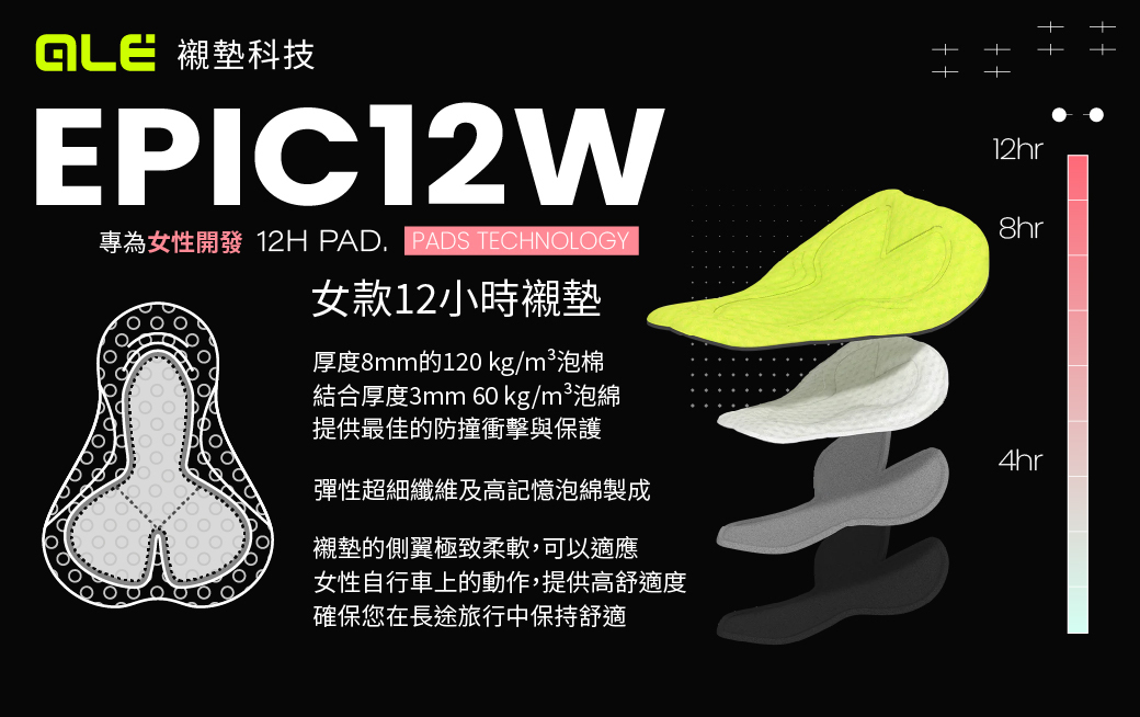 epic12w襯墊,專為女性設計,適合超過12小時以上的長途騎乘。多層結構保證了長久的性能與舒適,符合人體工學的外型設計,消除了任何摩擦,Epic讓冒險無限延伸。