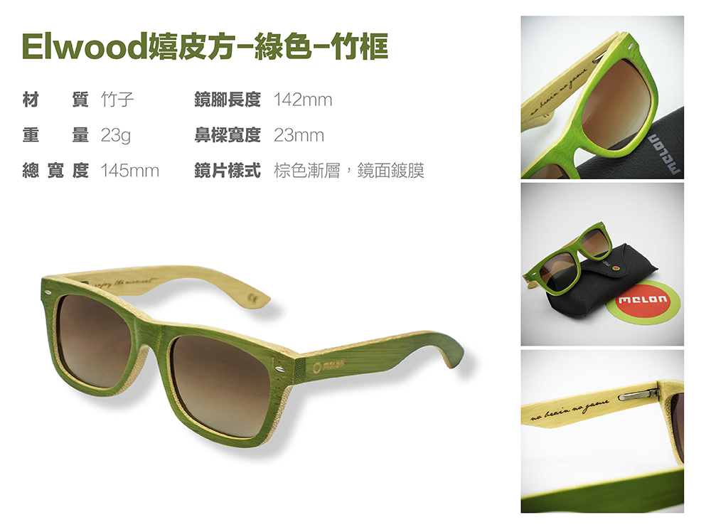 | 品名 | Melon®太陽眼鏡-Elwood嬉皮方-綠色-竹框 |