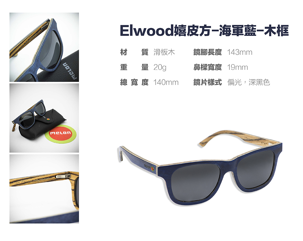 | 品名 | Melon®太陽眼鏡-Elwood嬉皮方-海軍藍-木框 |