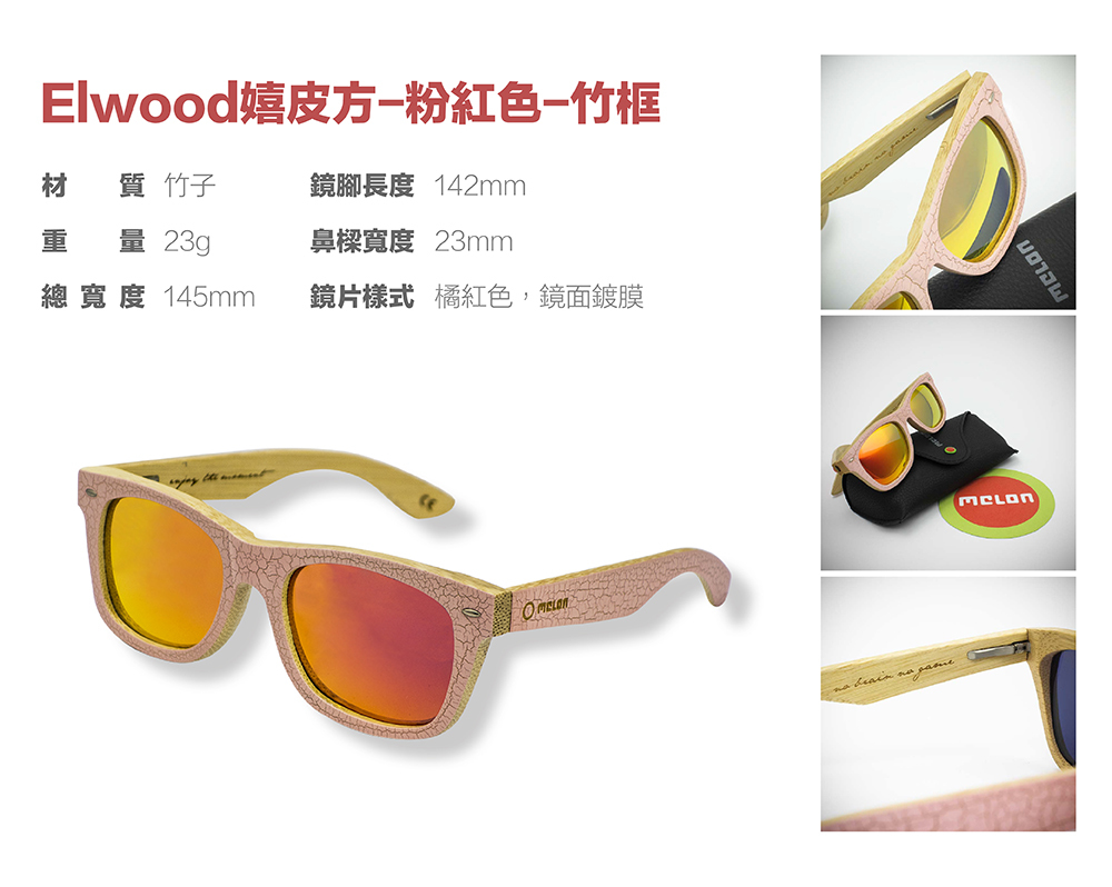 | 品名 | Melon®太陽眼鏡-Elwood嬉皮方-粉紅色-竹框 |