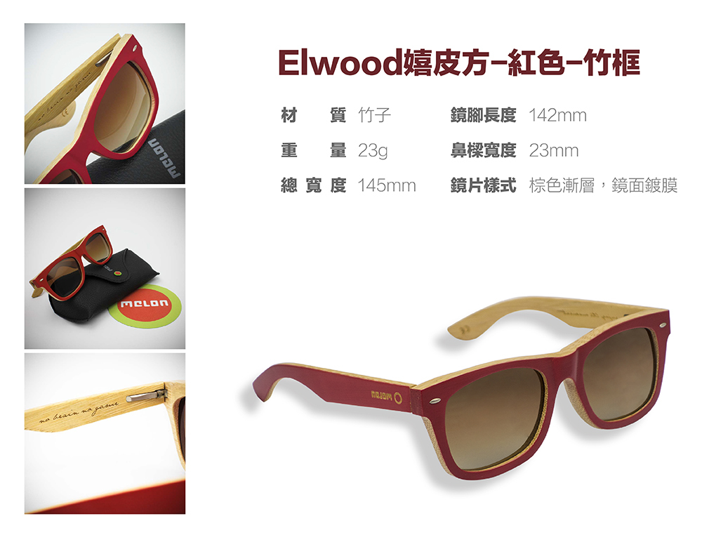 | 品名 | Melon®太陽眼鏡-Elwood嬉皮方-紅色-竹框 |
