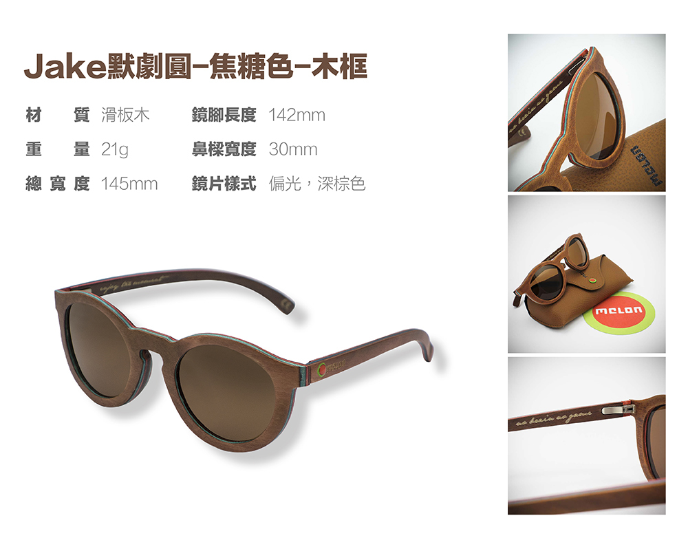 | 品名 | Melon®太陽眼鏡-Jake默劇圓-焦糖色-木框 |