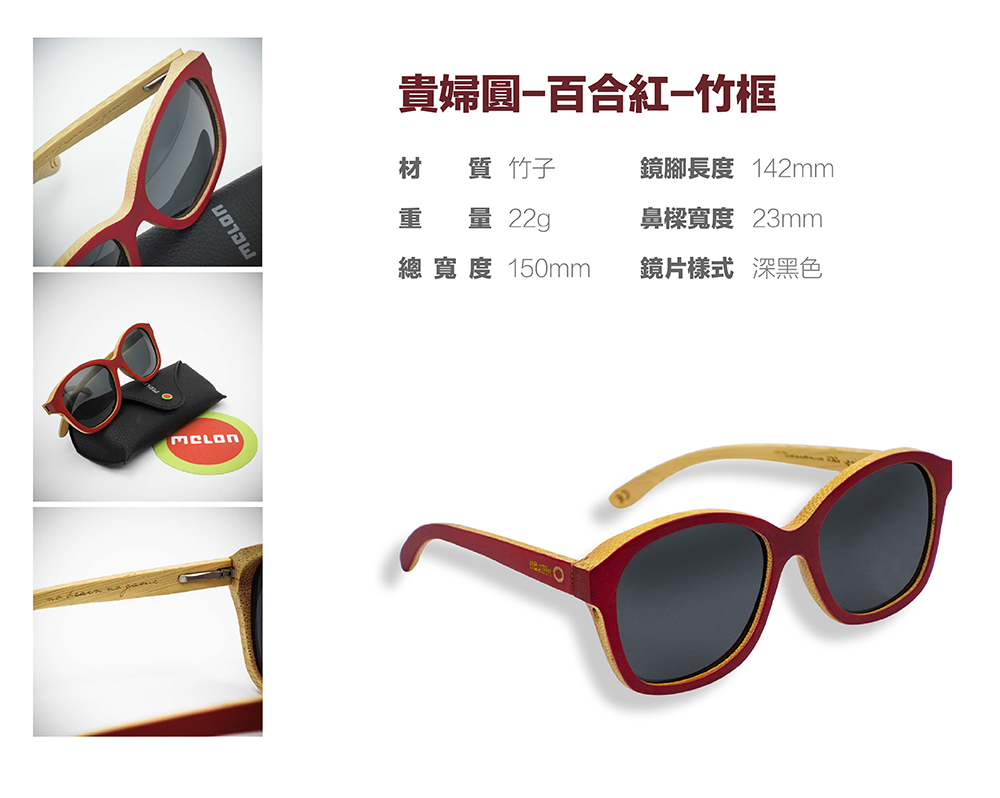 | 品名 | Melon®太陽眼鏡-貴婦圓-百合紅-竹框 |