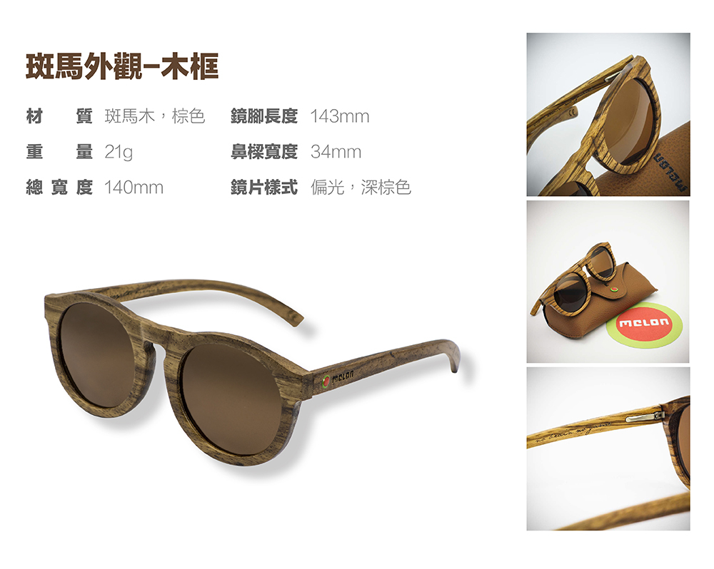 | 品名 | Melon®太陽眼鏡-斑馬外觀-木框 |