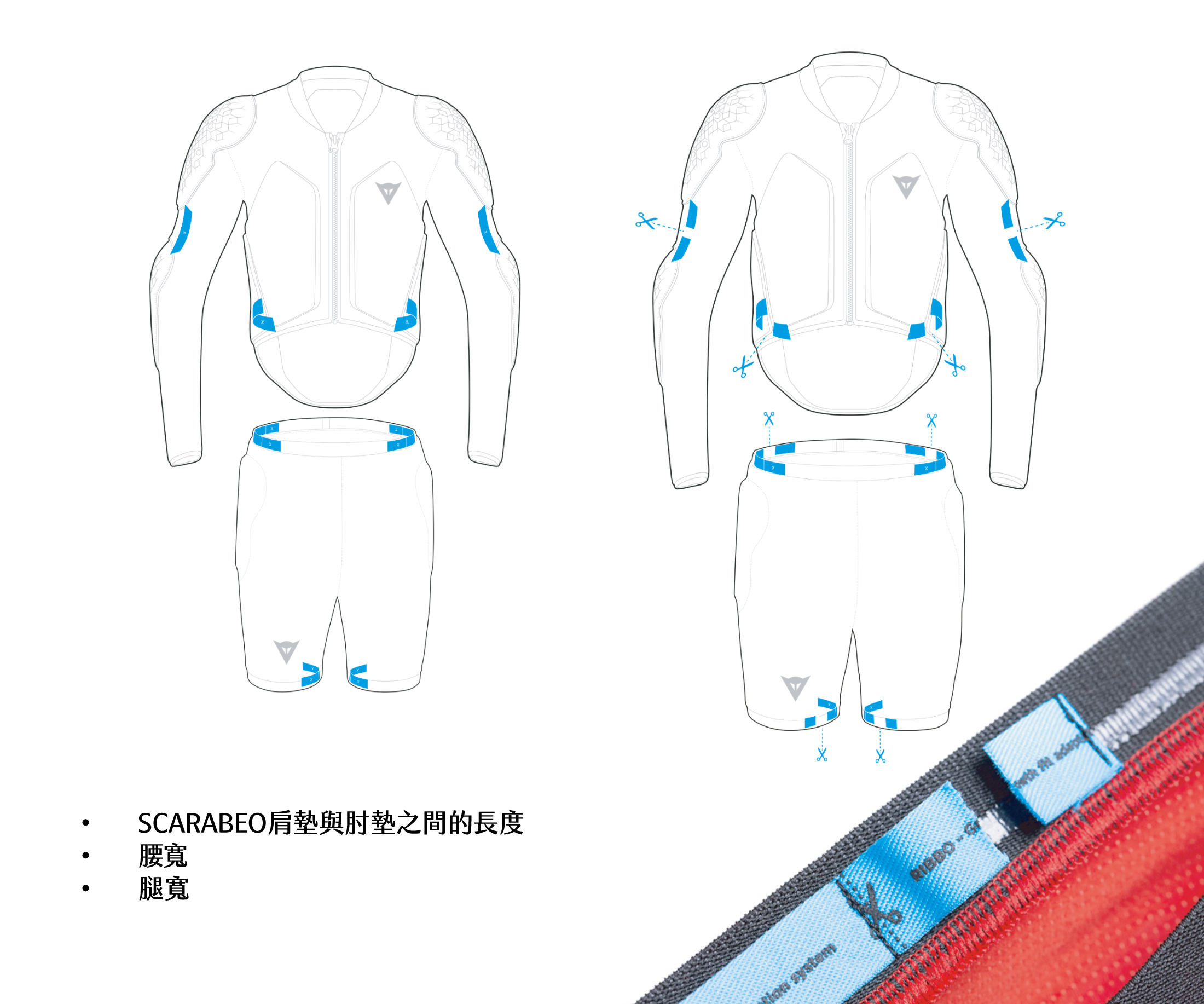 兒童青少年防護短褲,採用Pro-Shape側墊。 藉由RIBBO系統,腰部可以適應孩子的成長。